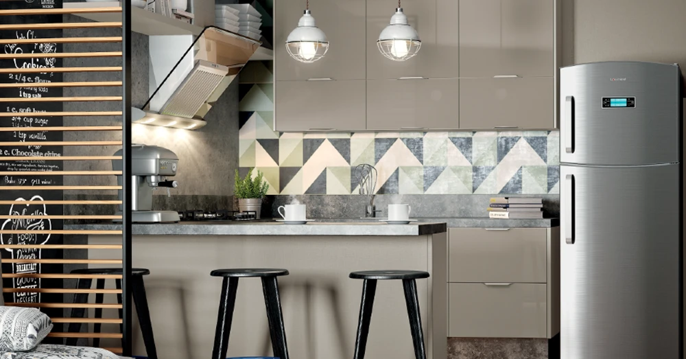 - Ordem dos equipamentos: geladeira – pia – fogão. A disposição desses equipamentos lado a lado e nessa ordem permite um fluxo de trabalho racional e funcional. A pia entre a geladeira e o fogão separa os eletrodomésticos e ajuda a controlar a diferença térmica entre o frio da geladeira e o calor do fogão