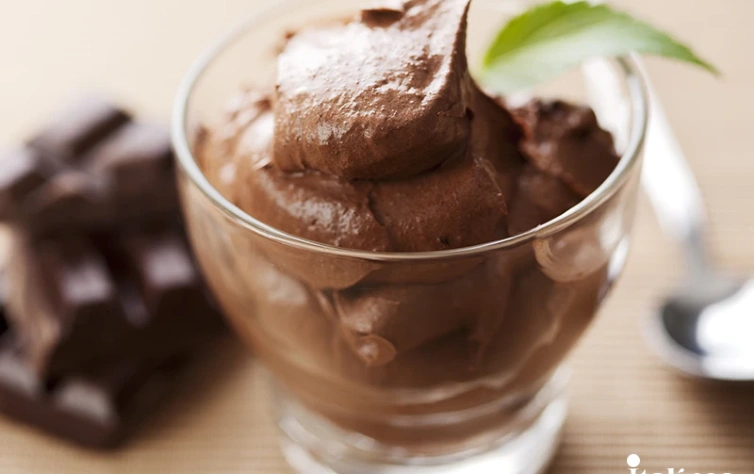 Modo de preparo: com a tigela da batedeira (preferencialmente de inox) dentro de 2 sacos plásticos (um dentro do outro), adicione o chocolate e a água fervente, misture e encha o saco de cubos de gelo, envolvendo a tigela. Bata, em velocidade média, por 2 minutos, distribua imediatamente em potes ou taças e sirva em seguida, decoradas a gosto. Dica: se começar a endurecer muito rápido na batedeira, pare de bater e misture com uma espátula.