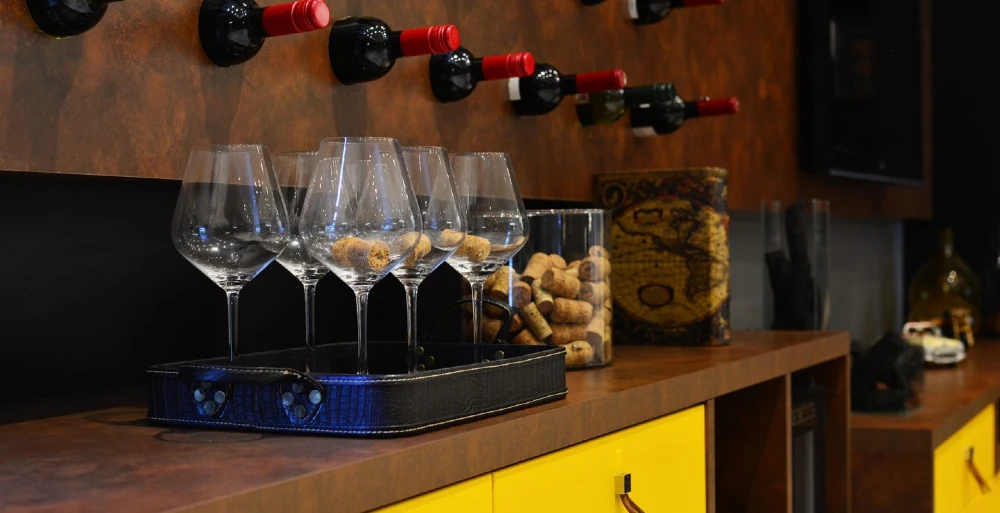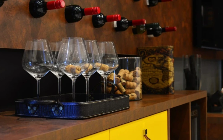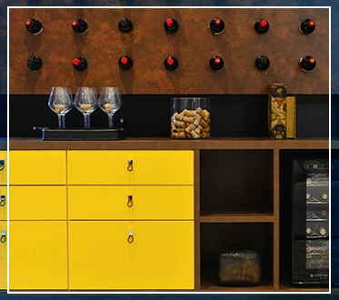 Outra dica é: se você mora em uma casa grande, aproveite os espaços. Nesse projeto, por exemplo, apostamos em uma adega acoplada no próprio móvel. Além de trazer mais personalidade – como já falamos acima -, deixou a sala mais requintada e moderna.