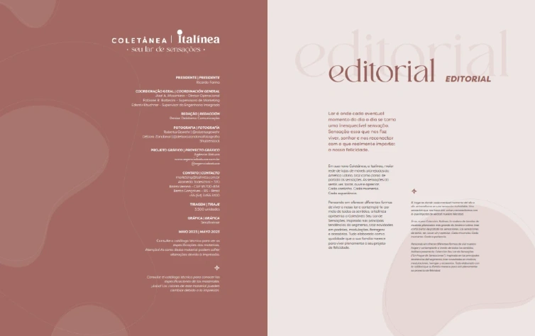 Em sua nova Coletânea, a Italínea, maior rede de lojas de móveis planejados da América Latina, traz como ponto de partida as sensações. As sensações do sentir, ver, tocar, ouvir e apreciar. Cada cantinho. Cada momento. Cada experiência.