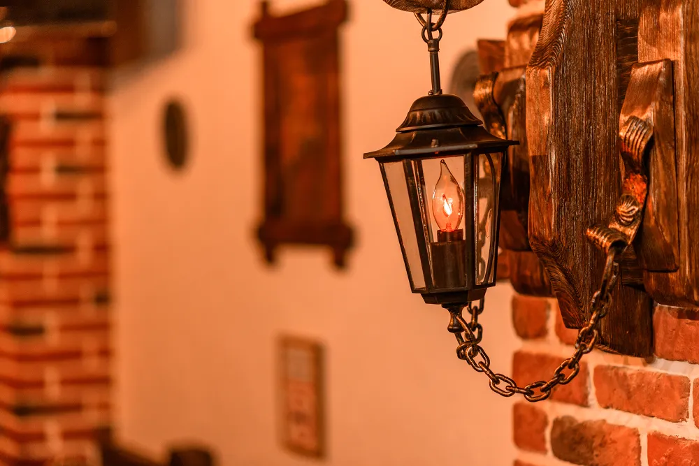 Luminárias rústicas e luz indireta: charme e aconchego ao ambiente.