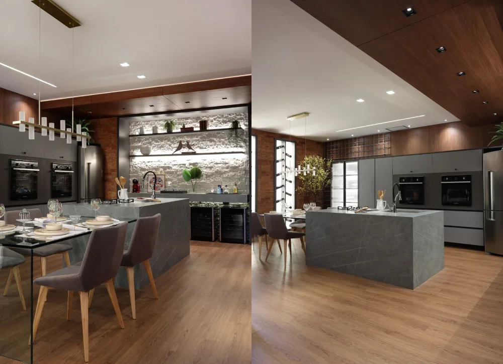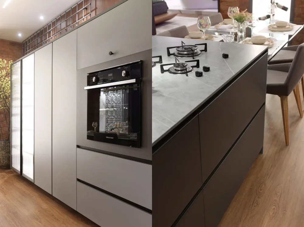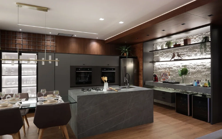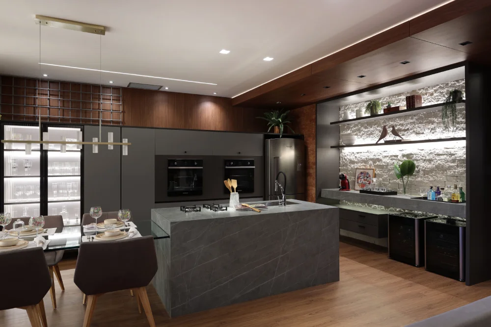 · Eletrodomésticos embutidos: são ideais para quem busca uma aparência mais clean e integrada. Eles ocupam menos espaço visual e se misturam ao mobiliário, proporcionando uma estética moderna e minimalista.