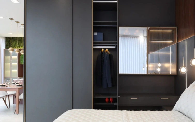 Diferente de um armário tradicional, o closet é projetado sob medida, levando em consideração suas preferências pessoais e o ambiente disponível. O conceito desse móvel envolve a personalização completa: desde a escolha dos materiais até a disposição dos compartimentos, prateleiras, gavetas e cabideiros. Cada detalhe é pensado para maximizar a funcionalidade e a organização, proporcionando um espaço que não só armazena seus pertences, mas também facilita o acesso e a visualização de todos os itens.