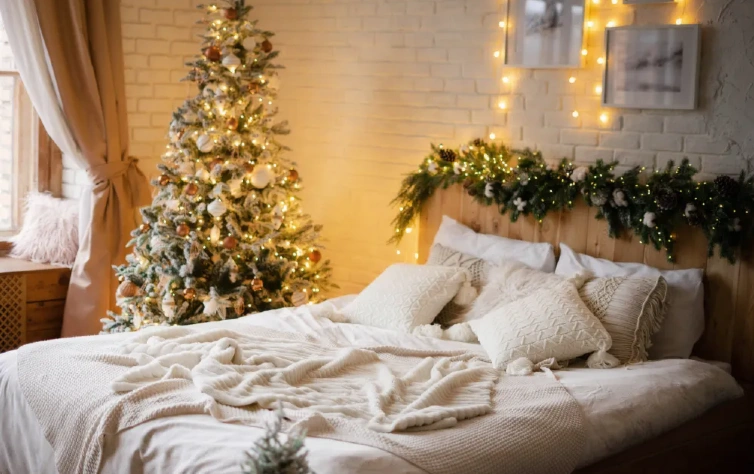 A iluminação é crucial para criar uma atmosfera acolhedora. Em espaços pequenos, use luzes de Natal de forma estratégica.