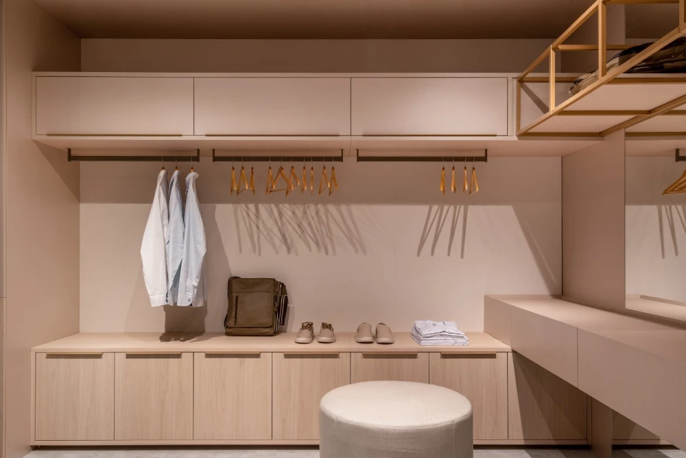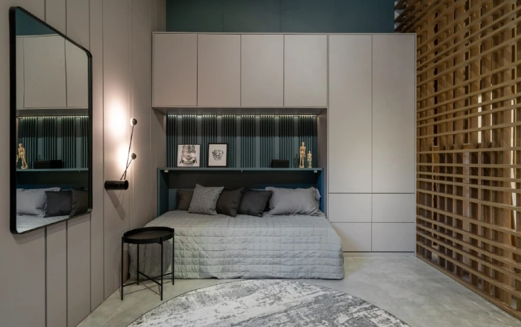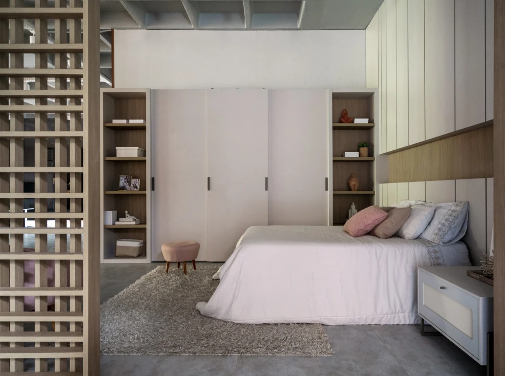 Harmonia de cores: para um visual equilibrado, escolha cores que complementem as demais tonalidades do quarto. Se as paredes são de cores neutras, você pode optar por armários na mesma paleta, como branco e cinza ou creme e camurça.