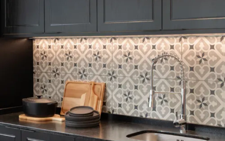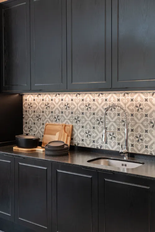 Em cozinhas, o revestimento PET é utilizado para criar armários e portas de gabinetes, resultando em superfícies lisas e brilhantes que são resistentes a manchas e fáceis de limpar.