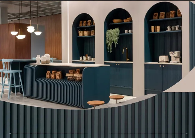 1. Painéis Arredondados: Uma das tendências em destaque são os painéis arredondados, que combinam sofisticação e versatilidade. Eles são ideais para compor ambientes mais fluidos e acolhedores, suavizando a rigidez das linhas retas. Em salas de estar, esses painéis conferem um toque orgânico, enquanto em quartos, funcionam como cabeceiras que envolvem o ambiente. Em cozinhas e áreas de convivência, ajudam a promover integração e harmonia, suavizando as transições entre os espaços.