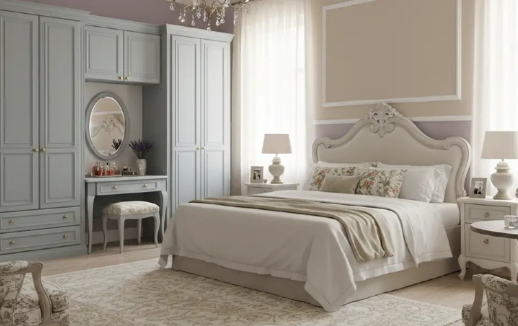 O estilo provençal traz delicadeza e aconchego ao dormitório planejado. Tons suaves, acabamentos claros e detalhes clássicos criam um ambiente acolhedor e elegante. É um estilo que valoriza a sensação de conforto visual e funciona bem em projetos que buscam um clima mais romântico e atemporal, sem renunciar à funcionalidade do mobiliário planejado.